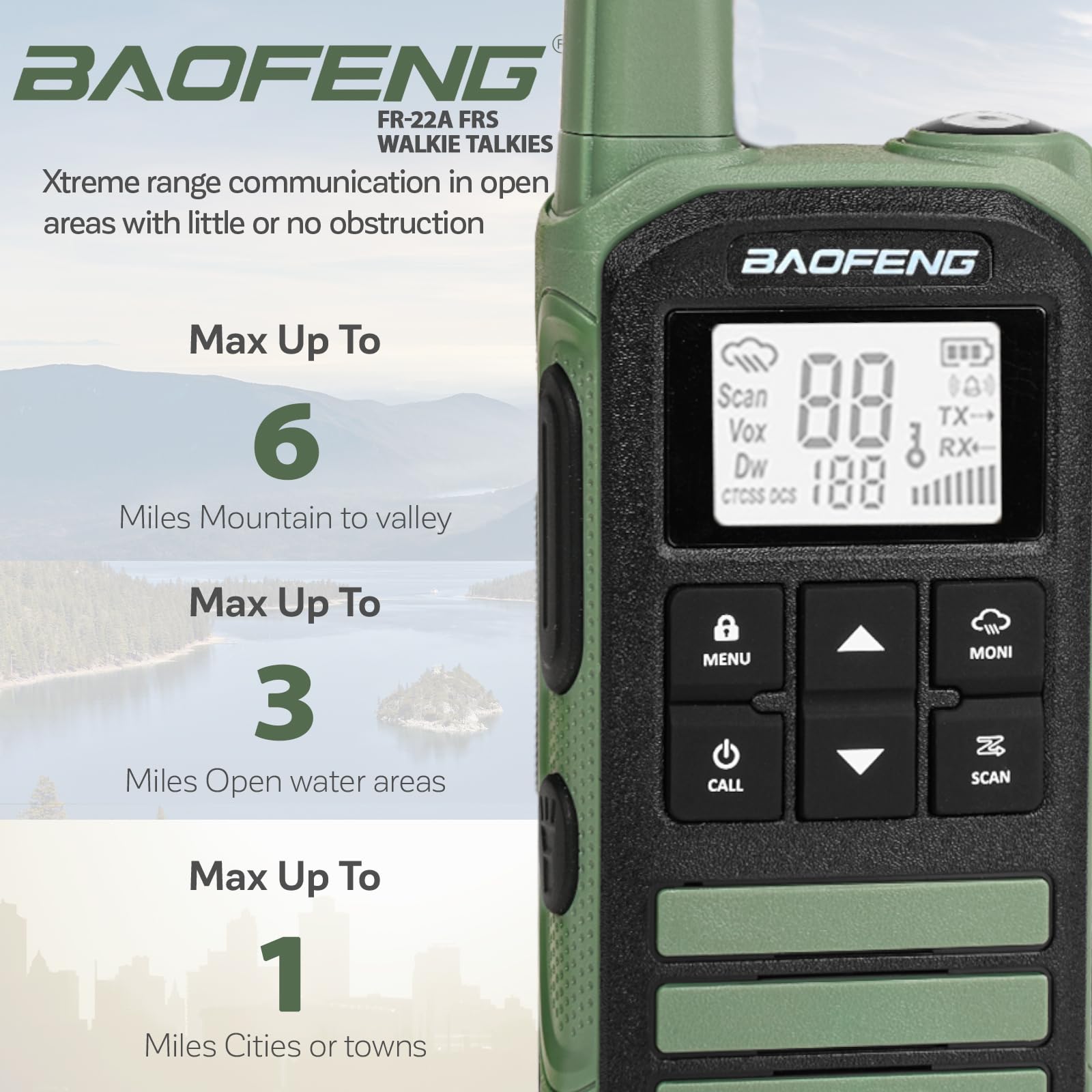 - Multiple channels and privacy guarantee⚠️ Comes with 22 FRS channels, 50 CTCSS privacy codes, and 105 DCS privacy codes. You can set your own main channel and privacy code to avoid interference and is compatible with other brand FRS walkie-talkies.