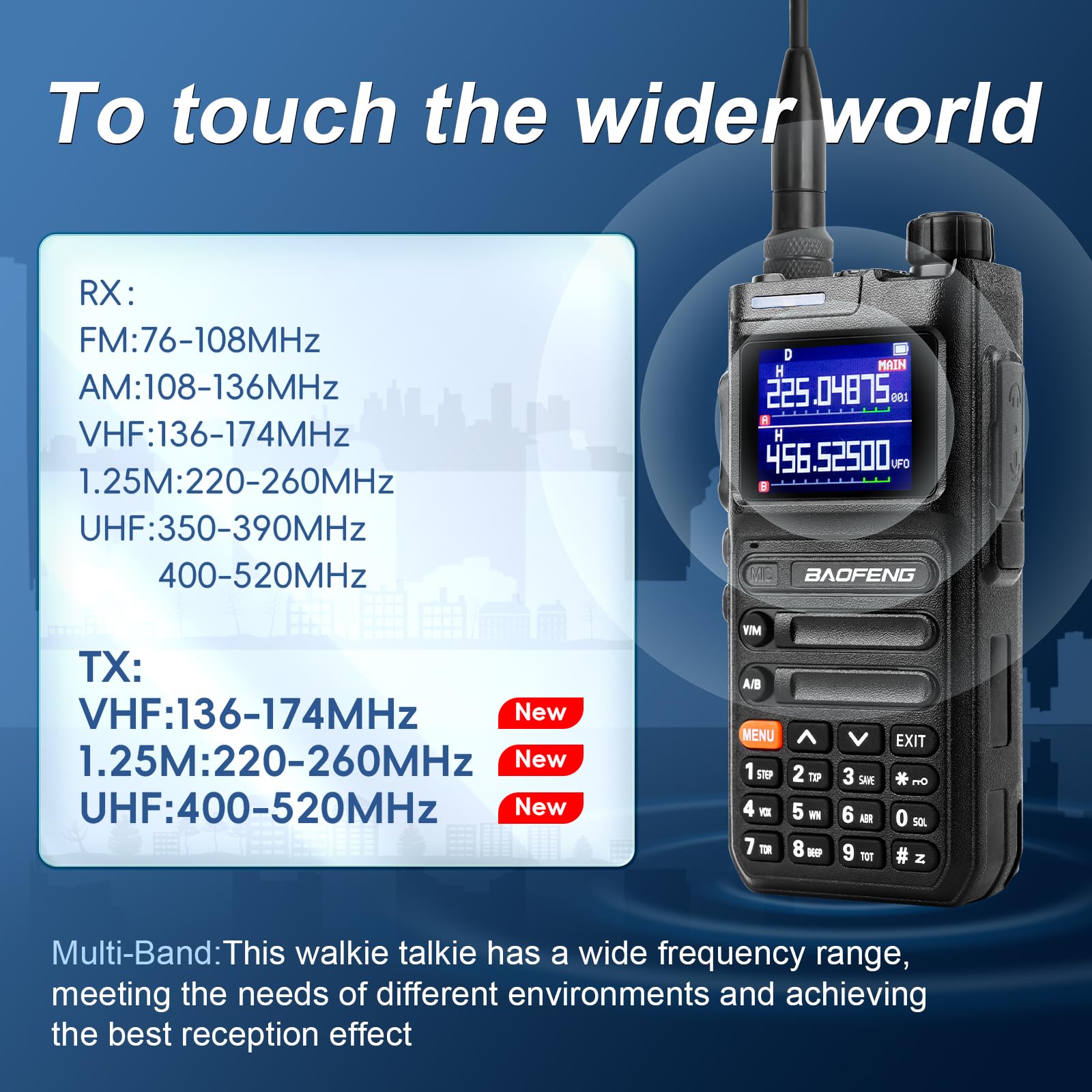 - 💎【10 Watt & Multi Band】The professional BAOFENG Ham Radio boasts a 10 Watt high-power output, and an upgraded chip that supports a variety of bands. The transmitting frequency range:136-174MHz, 220-260MHz, 400-520MHz. The receiving frequency range:108-136MHz,136-174MHz, 220-260MHz, 350-390MHz, 400-520MHz