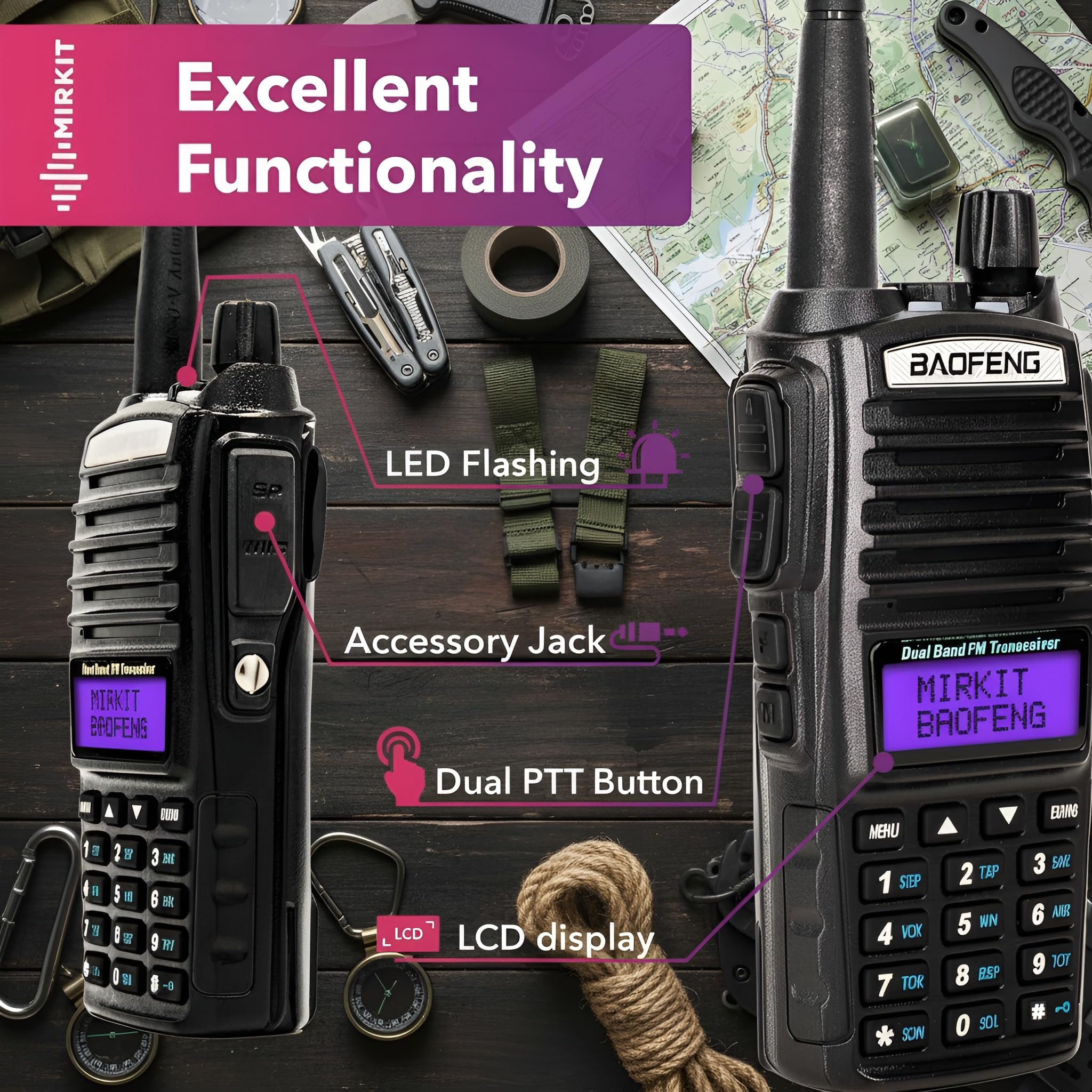 - Easy to Use Ham Radio Handheld: Baofeng UV-82 MK5 long range walkie talkies feature Dual PTT button, auto keypad lock, and dual band/frequency display. Perfect for beginners and experienced handheld ham radio enthusiasts alike.
